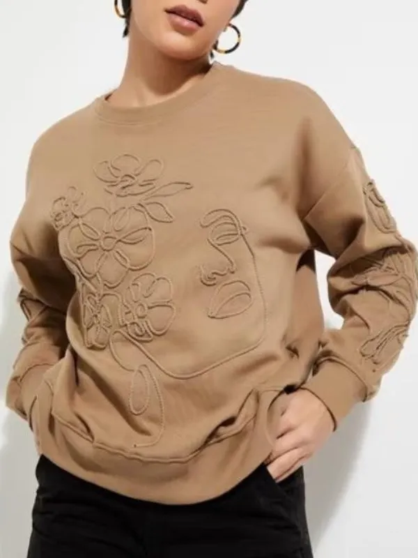 TV Series 90 Day Fiance The Other Way Season 6 Jenny Slatten Crew Neck Floral Applique Sweater – Brown