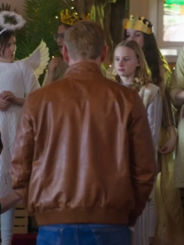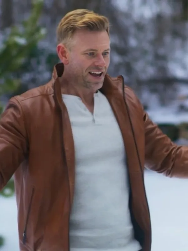 A Christmas Less Traveled 2024 Eric Johnson Brown Leather Jacket