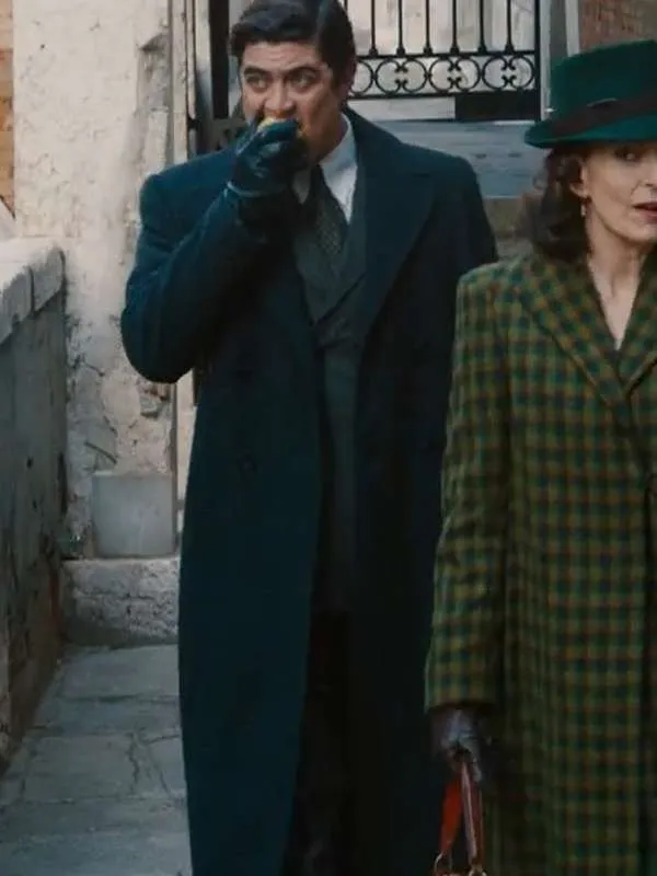 A Haunting in Venice 2023 Riccardo Scamarcio Black Trench Coat