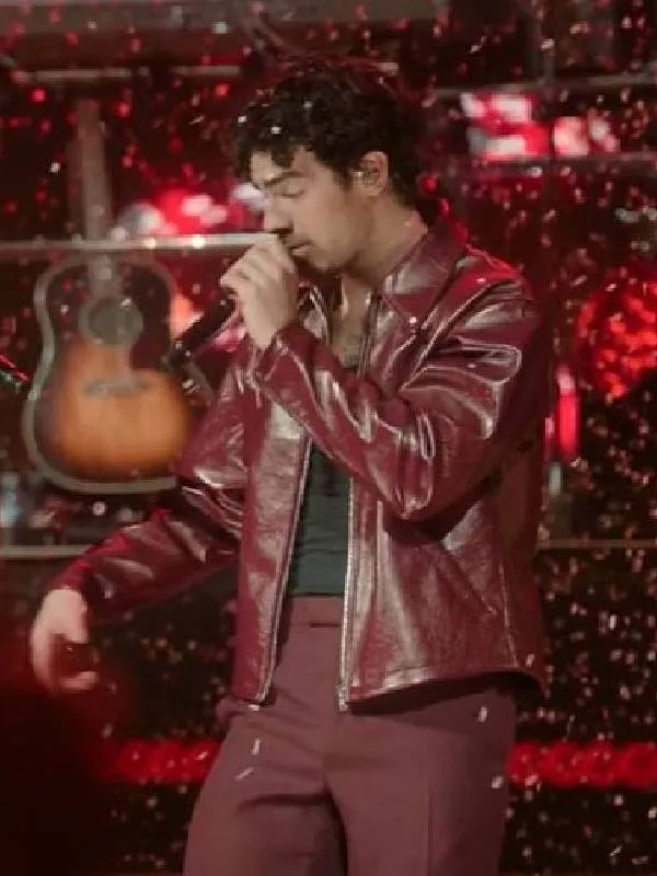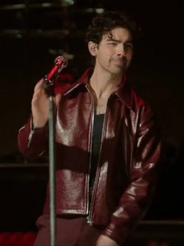 A Very Jonas Christmas Joe Jonas Burgundy Leather Jacket