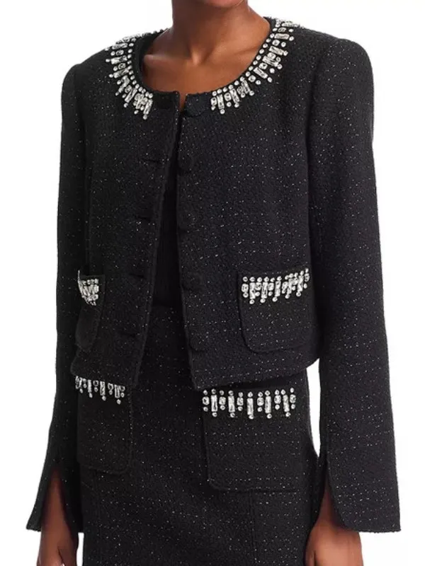Abbott Elementary S4 Tatyana Ali Embellished Tweed Jacket