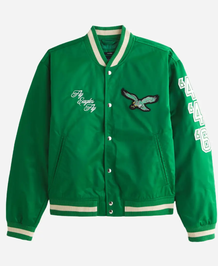 Abercrombie & Fitch 2025 Philadelphia Eagles Satin Varsity Bomber Jacket