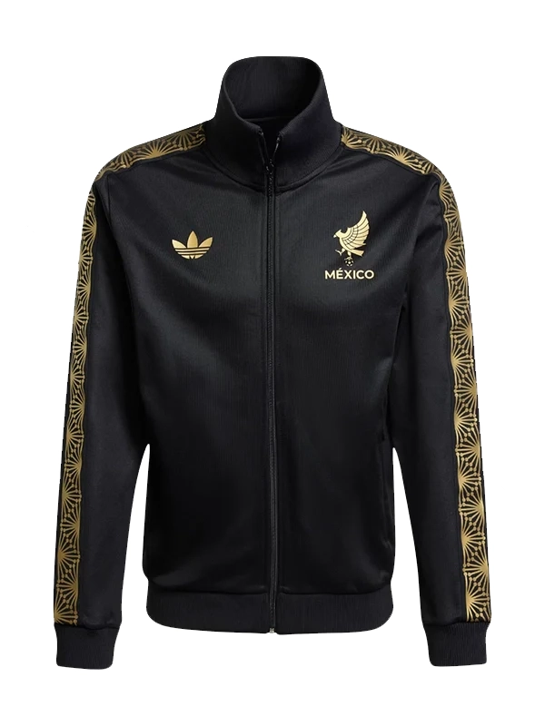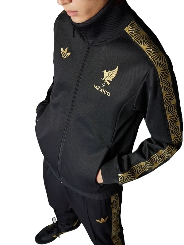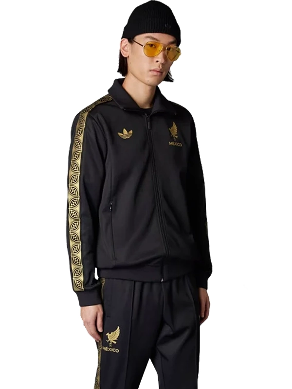 2025 Adidas Originals Mexico Gold Track Top Jacket in Black – premium streetwear, sleek track design, gold Mexico detailing, classic Adidas Originals style.