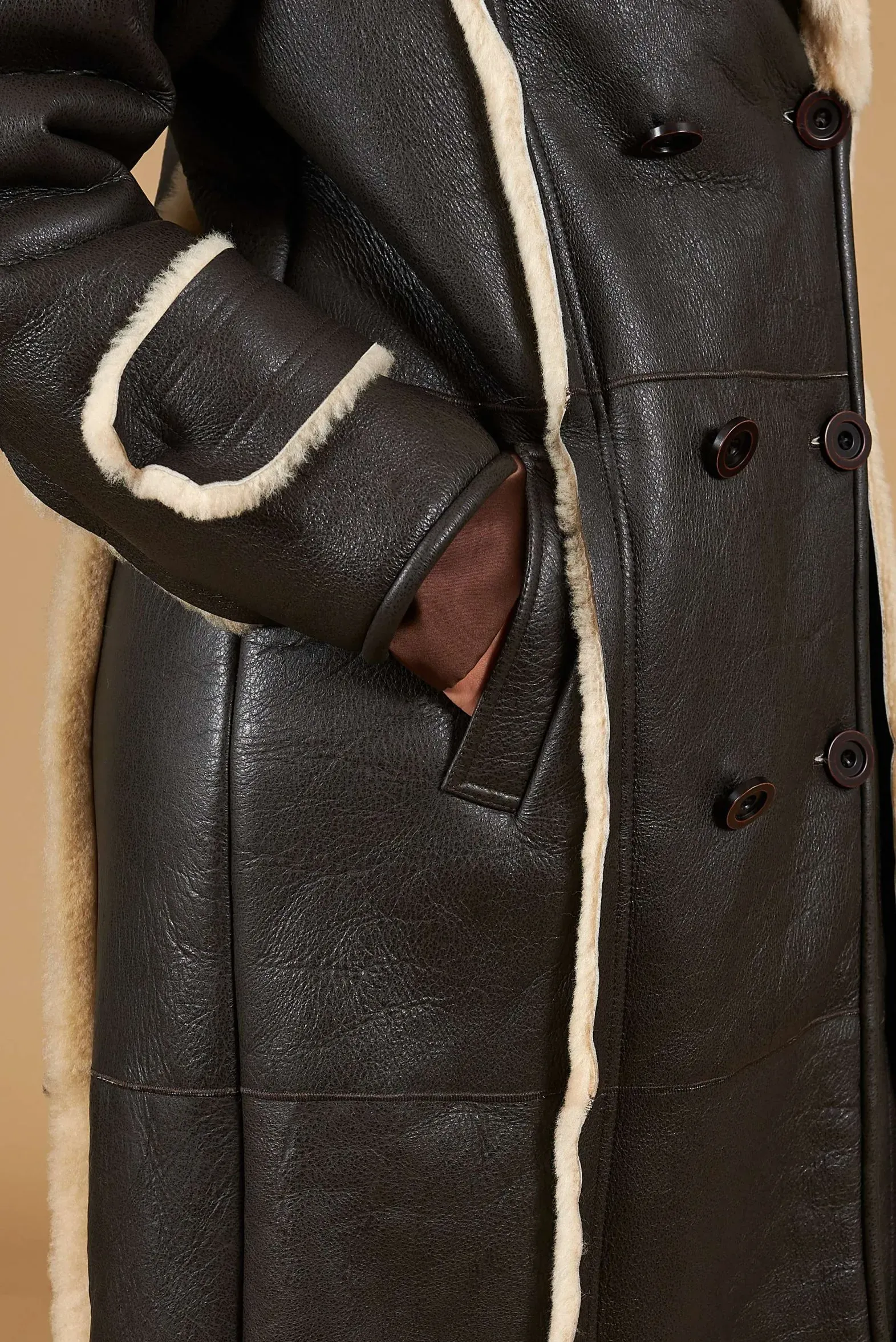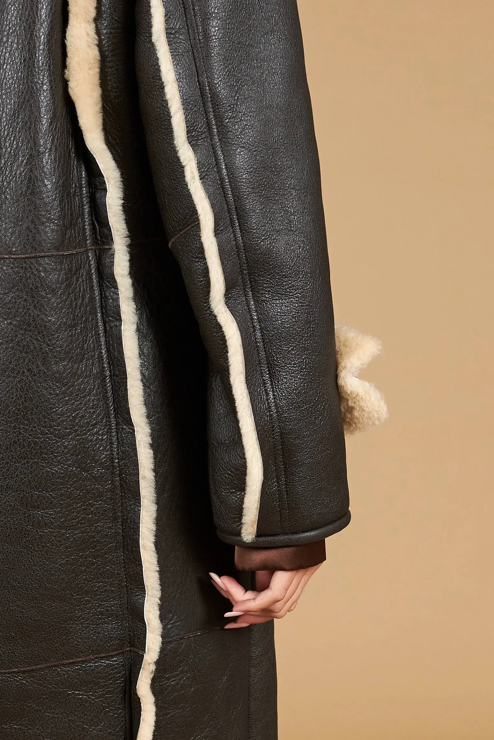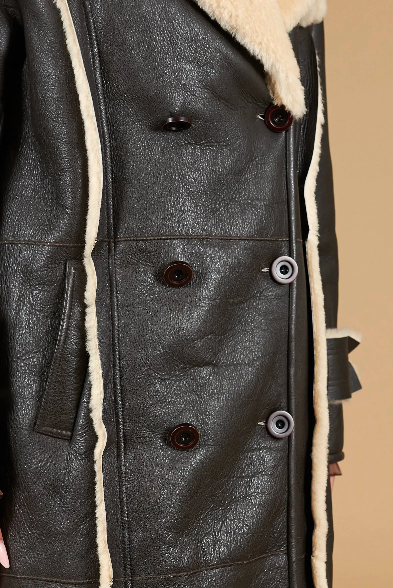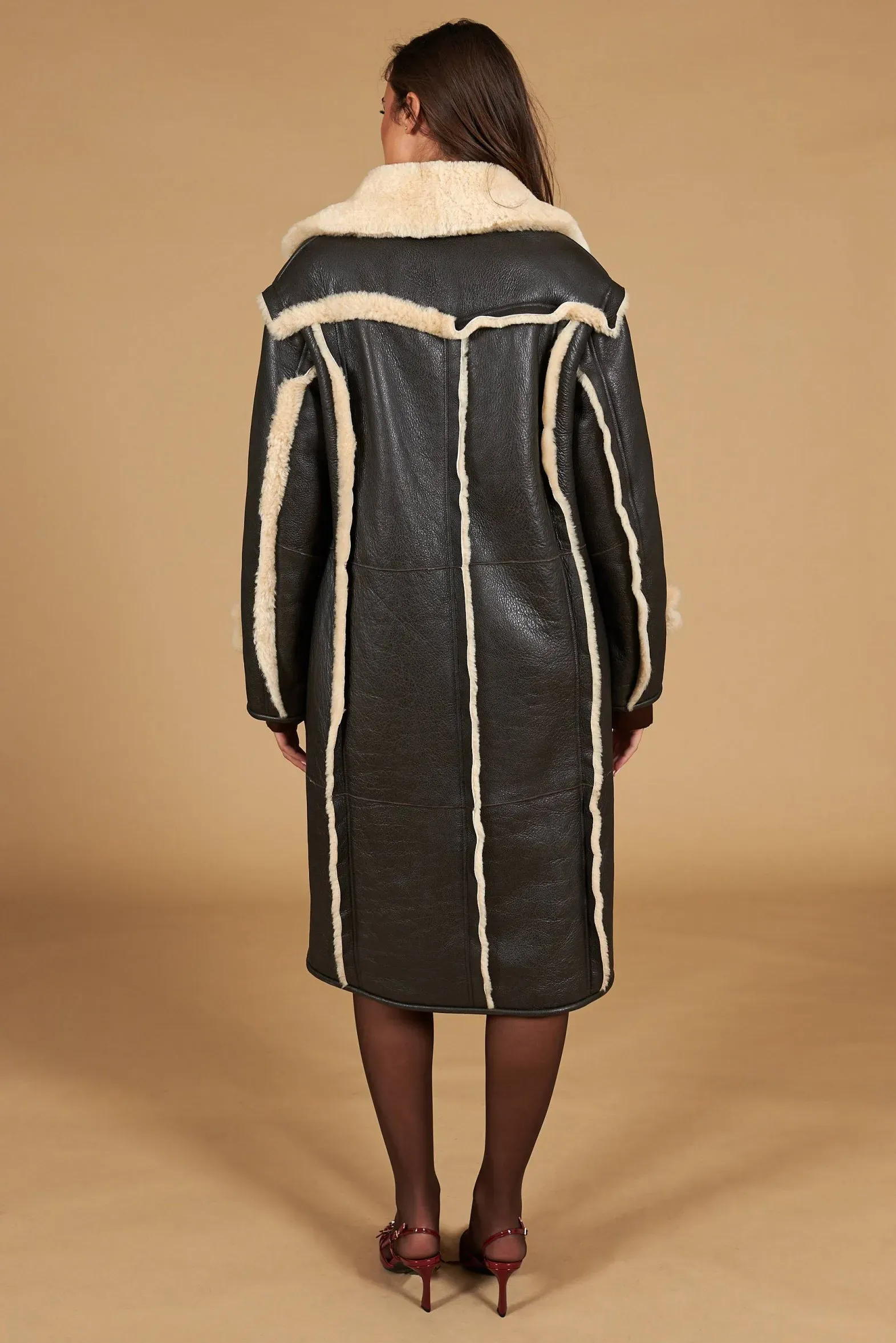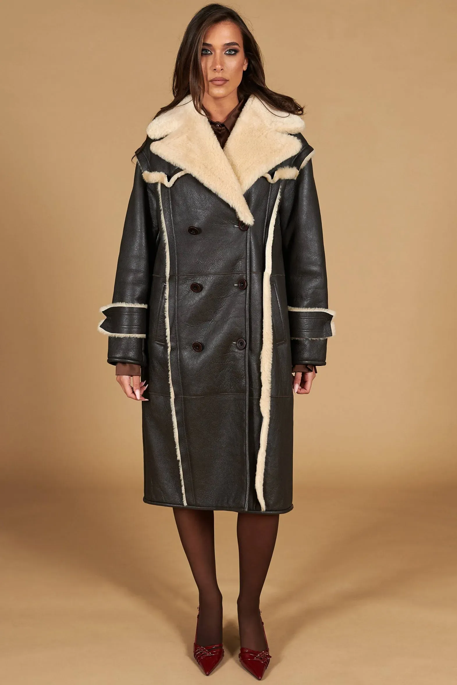 Alix – Dark brown double-breasted shearling coat vintage effect