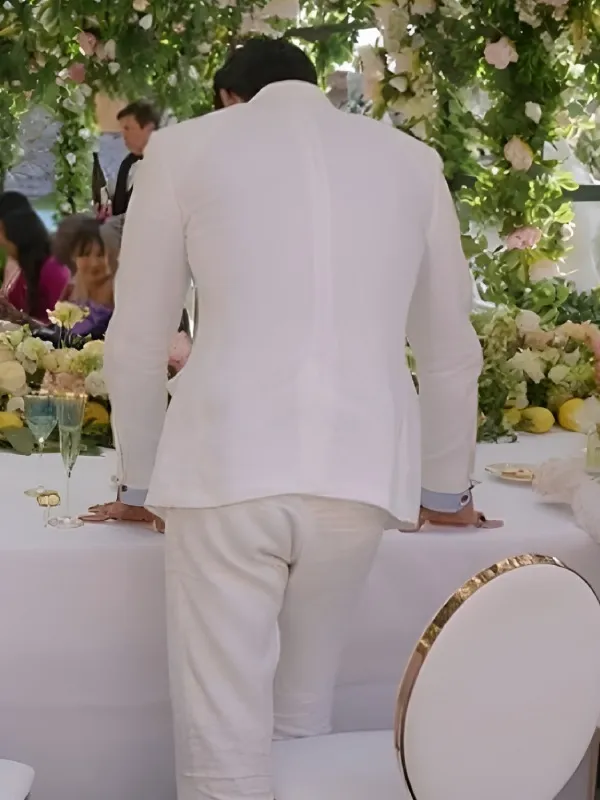 Michele Morrone Movie Another Simple Favor 2025 Dante Versano Double-Breasted Blazer – White