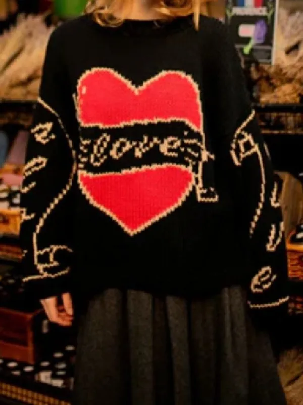 Eve Hewson TV Series Bad Sisters Season 2 Becka Garvey Love Heart Knitted Sweater – Black