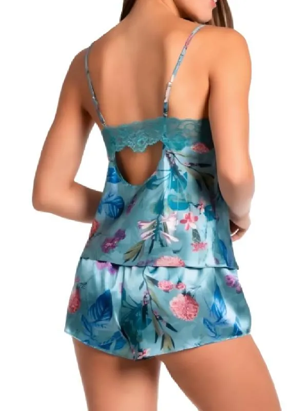 Beyond the Gates Jen Jacob Blue Floral Satin Pajama Set