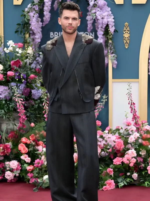 Bridgerton S3 Premiere Luke Newton Suit