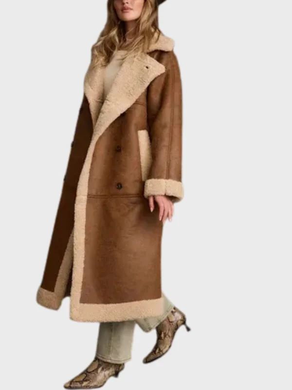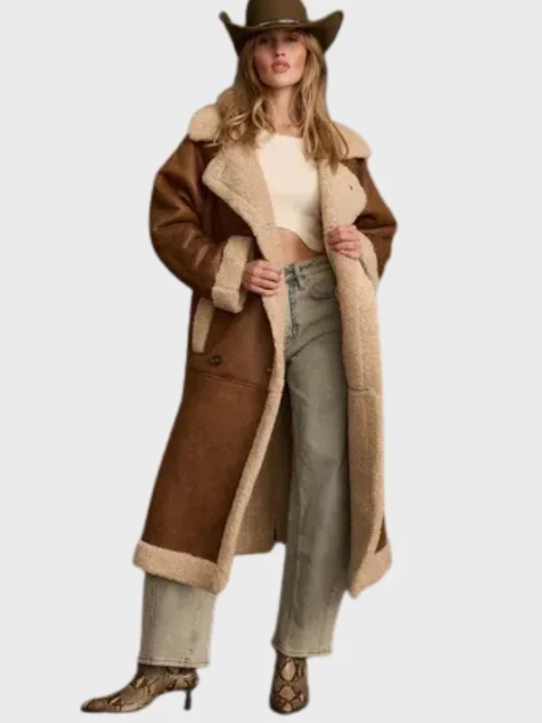 The Brown Sherpa Livingston Coat is designed for those who want warmth, comfort, and refined winter style without ever feeling bulky. This long sherpa coat gives a cozy and polished vibe.