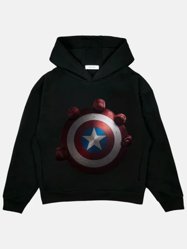 Captain America: Brave New World 2025 Shield With Hand-Printed Black Hoodie