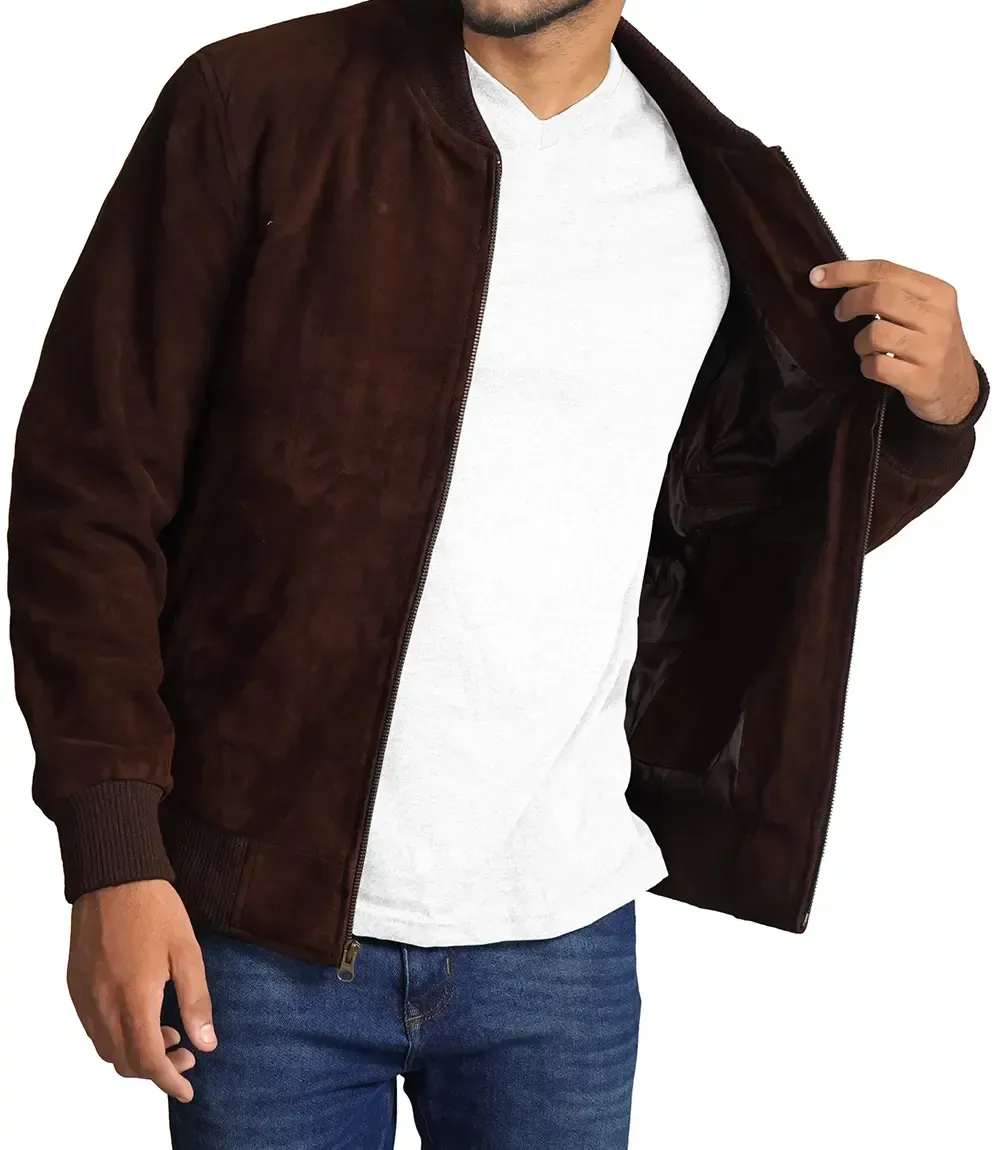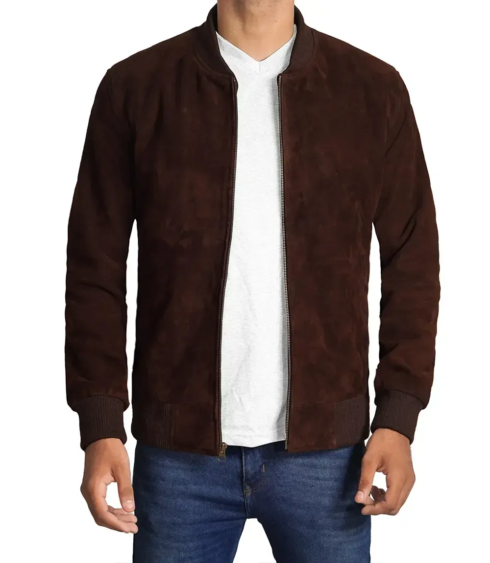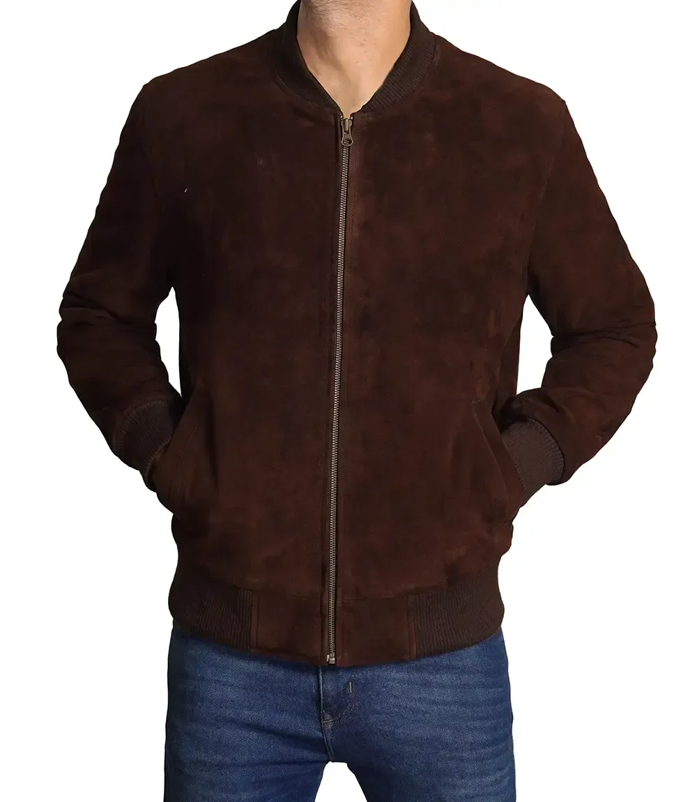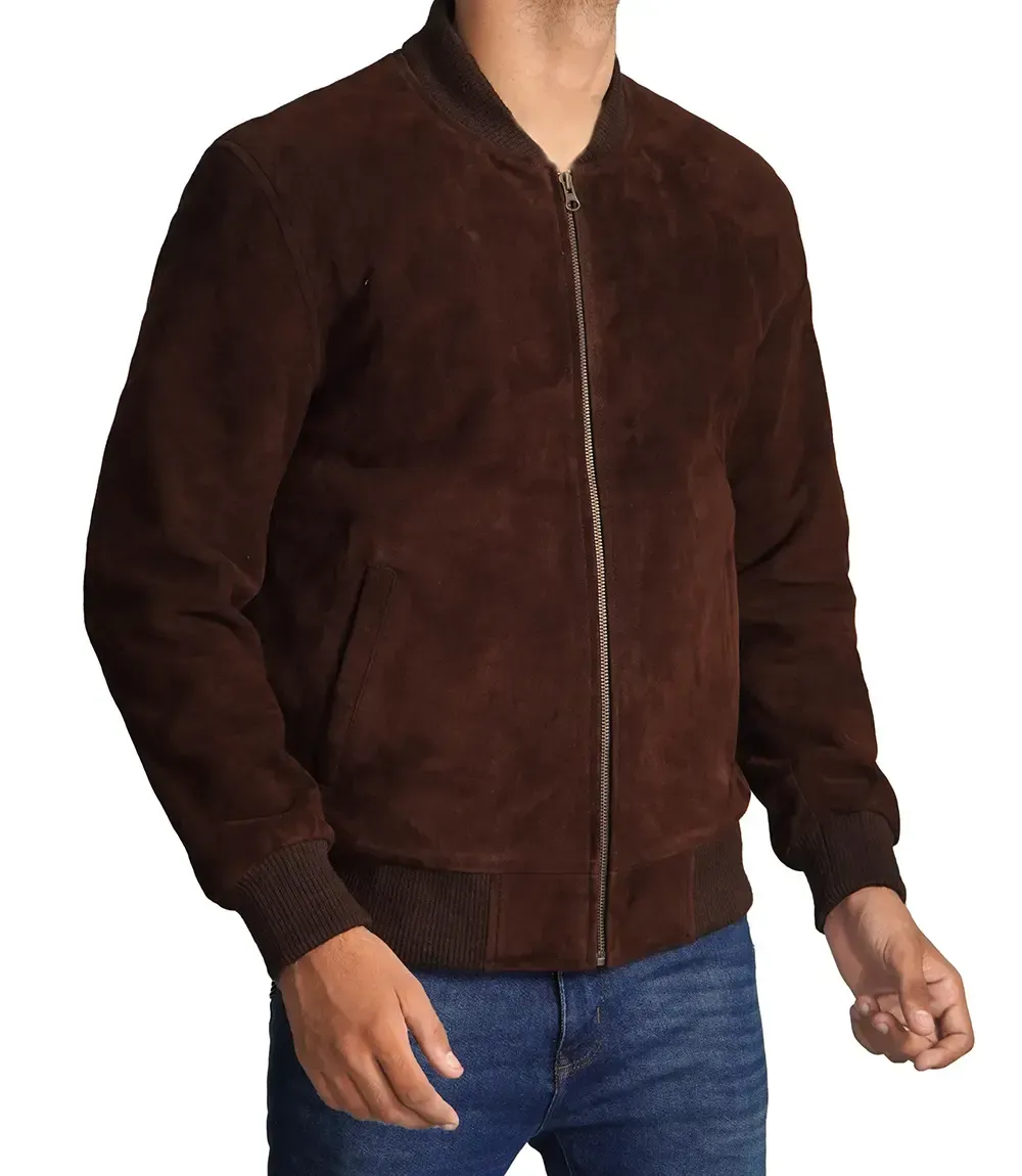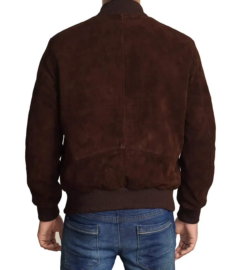 Dark Brown Suede Bomber Jacket Mens