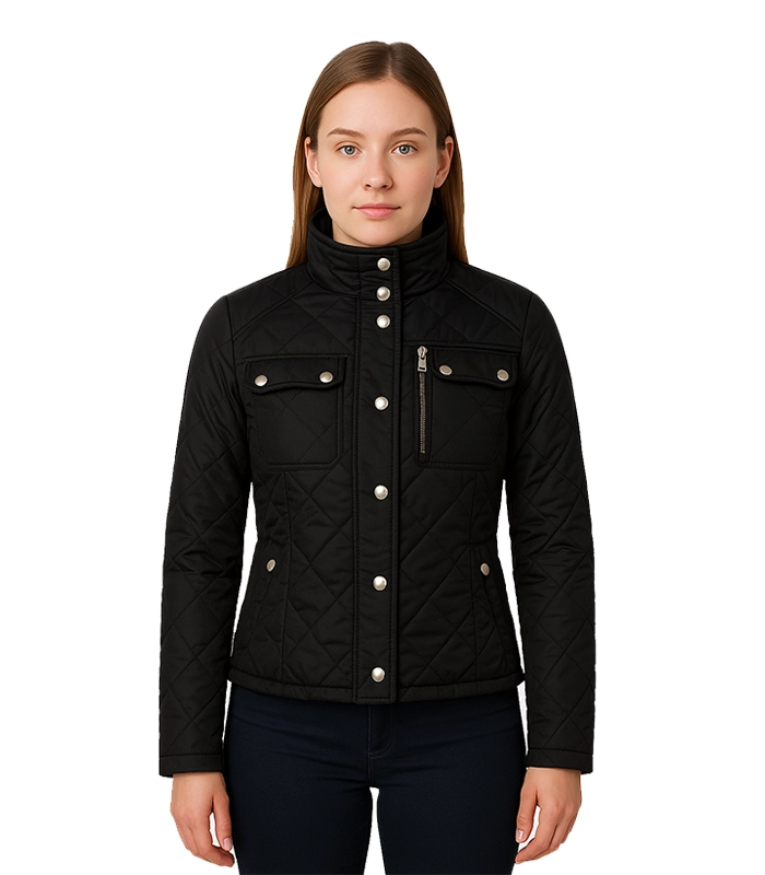 Delphia Black Quilted Jacket for Women – Lightweight Warmth with Sleek Style
