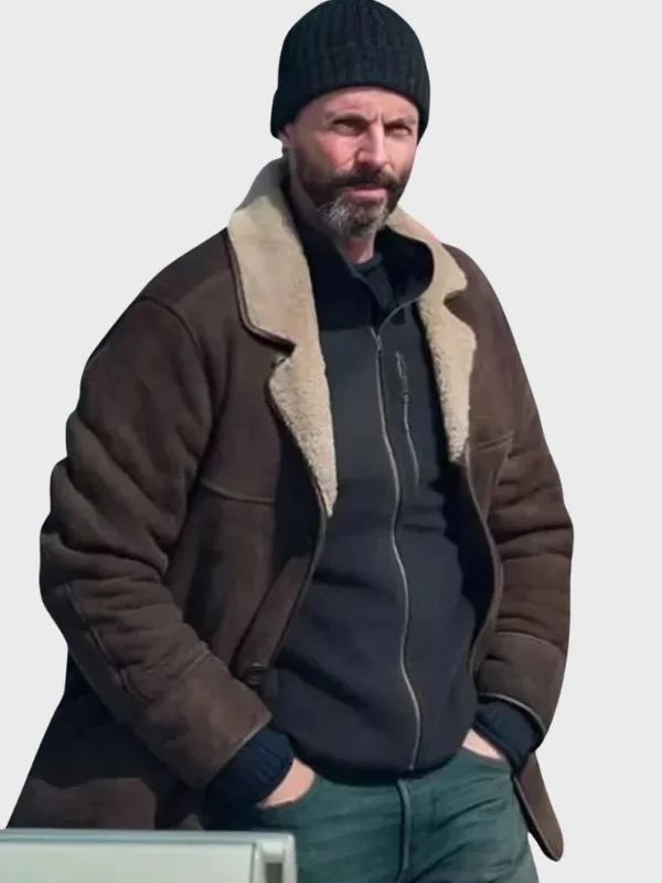 Buy Now Carl Morck Tv Series Dept Q 2025 Matthew Goode Shearling Brown Suede Leather Coat For Sale | Real American Jackets