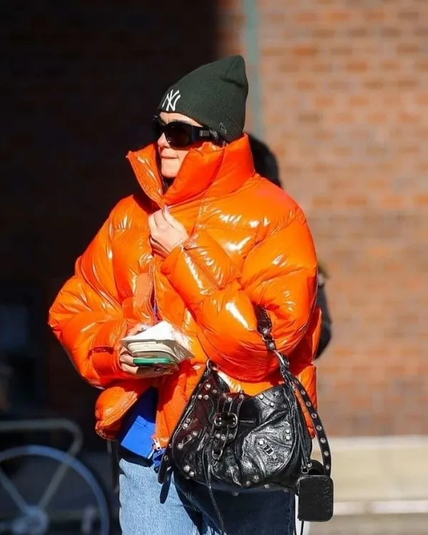 Be the first to review “Dua Lipa Shiny Orange Puffer Jacket”
