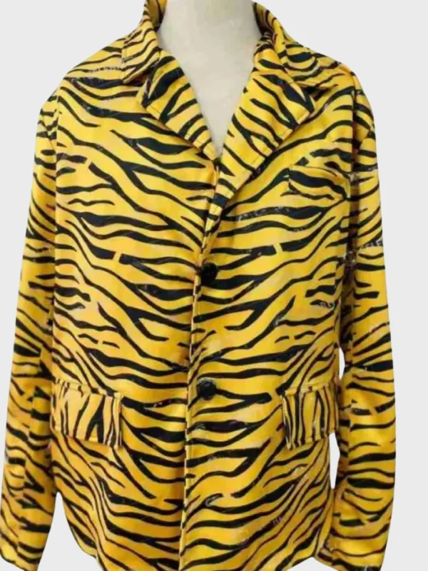 The Eddie Van Halen Tiger Print Jacket is pure rock-and-roll attitude stitched into a wearable statement. It is inspired by the legendary guitarist’s iconic tiger aesthetic. This jacket is made for those who want attention.