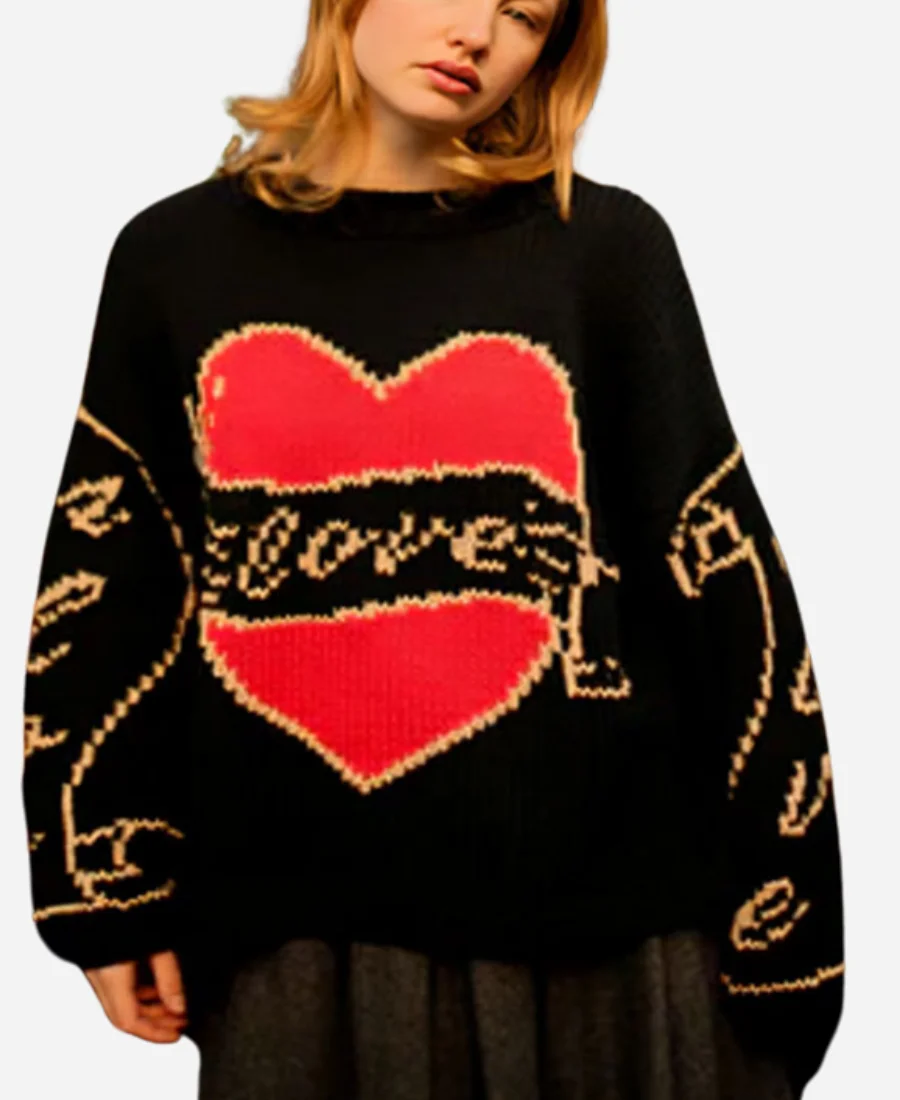 The Eve Hewson Bad Sisters S02 Love Black Heart Sweater is made for those who want comfort with personality. It gives you charm while keeping things cozy and polished.