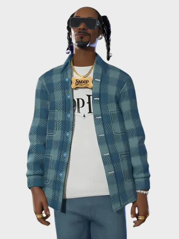Buy Now the Video Game Fortnite Chapter 2 Snoop Dogg Blue Checked Shirt | Only at Real American Jackets