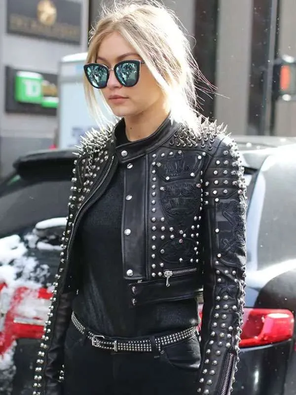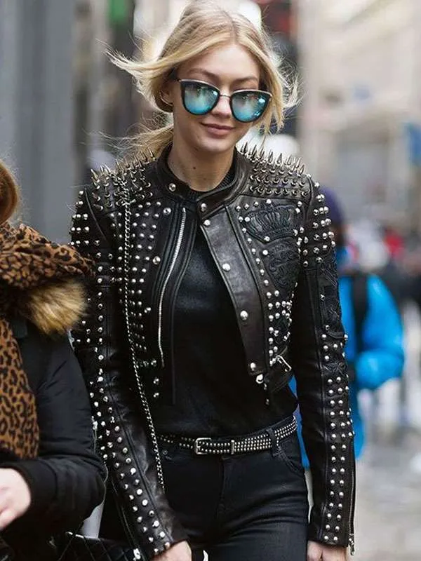 Gigi Hadid Black Studded Leather Jacket