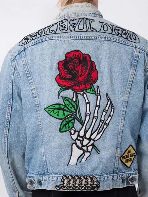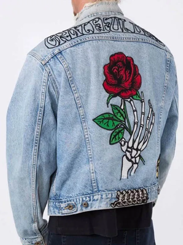 Grateful Dead Embroidered Rose Blue Denim Jacket