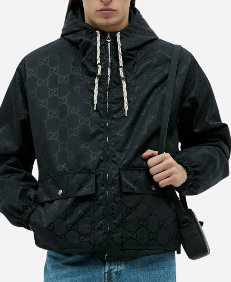 Gucci Padded Logo Jacquard Shell Hooded Jacket