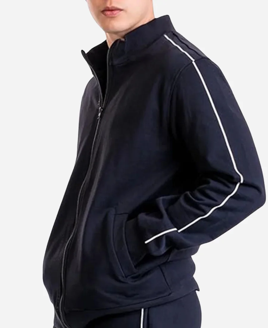 Shop Now the Owen Cooper Tv Series Adolescence 2025 Jamie Miller Blue Stripped Zipper Jacket | For Sale