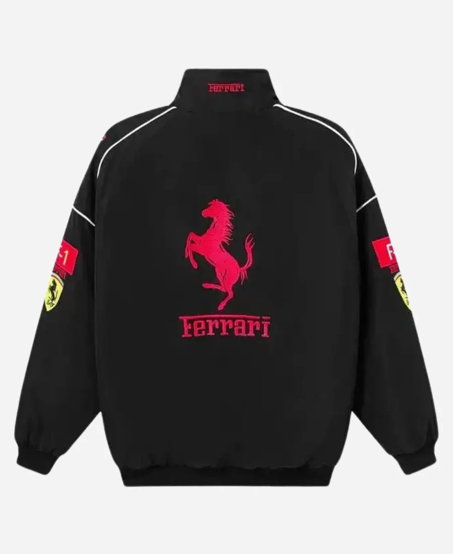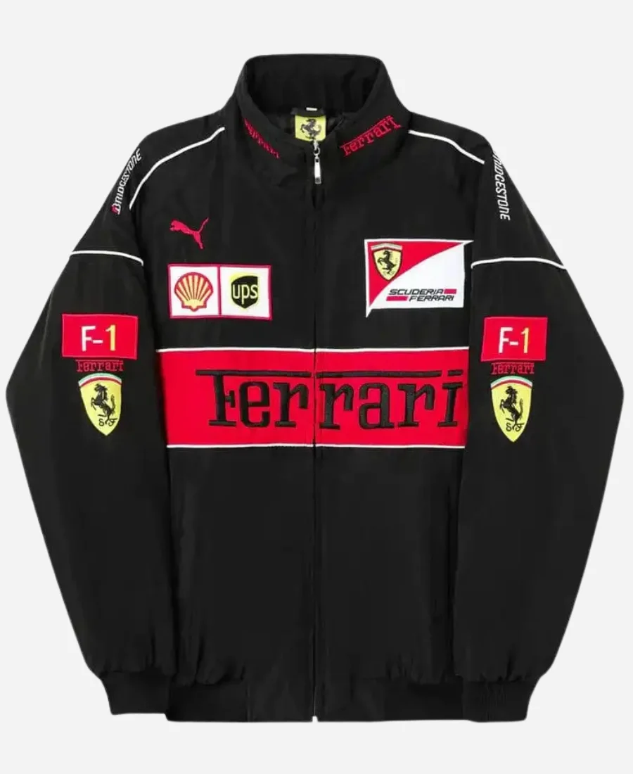Shop Now the Jared Leto Ferrari Vintage F1 Black Jacket | For Sale