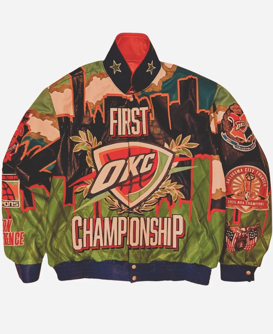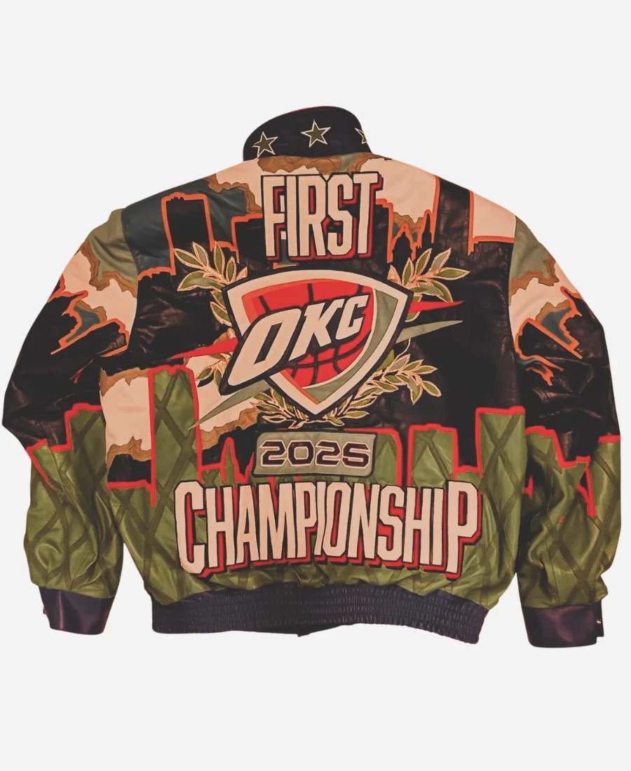 The Jeff Hamilton 2025 OKC Thunder Jacket is a true celebration of team pride and standout street style. It’s a statement piece that commands attention.
