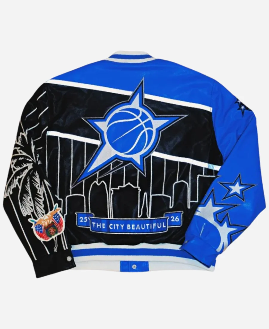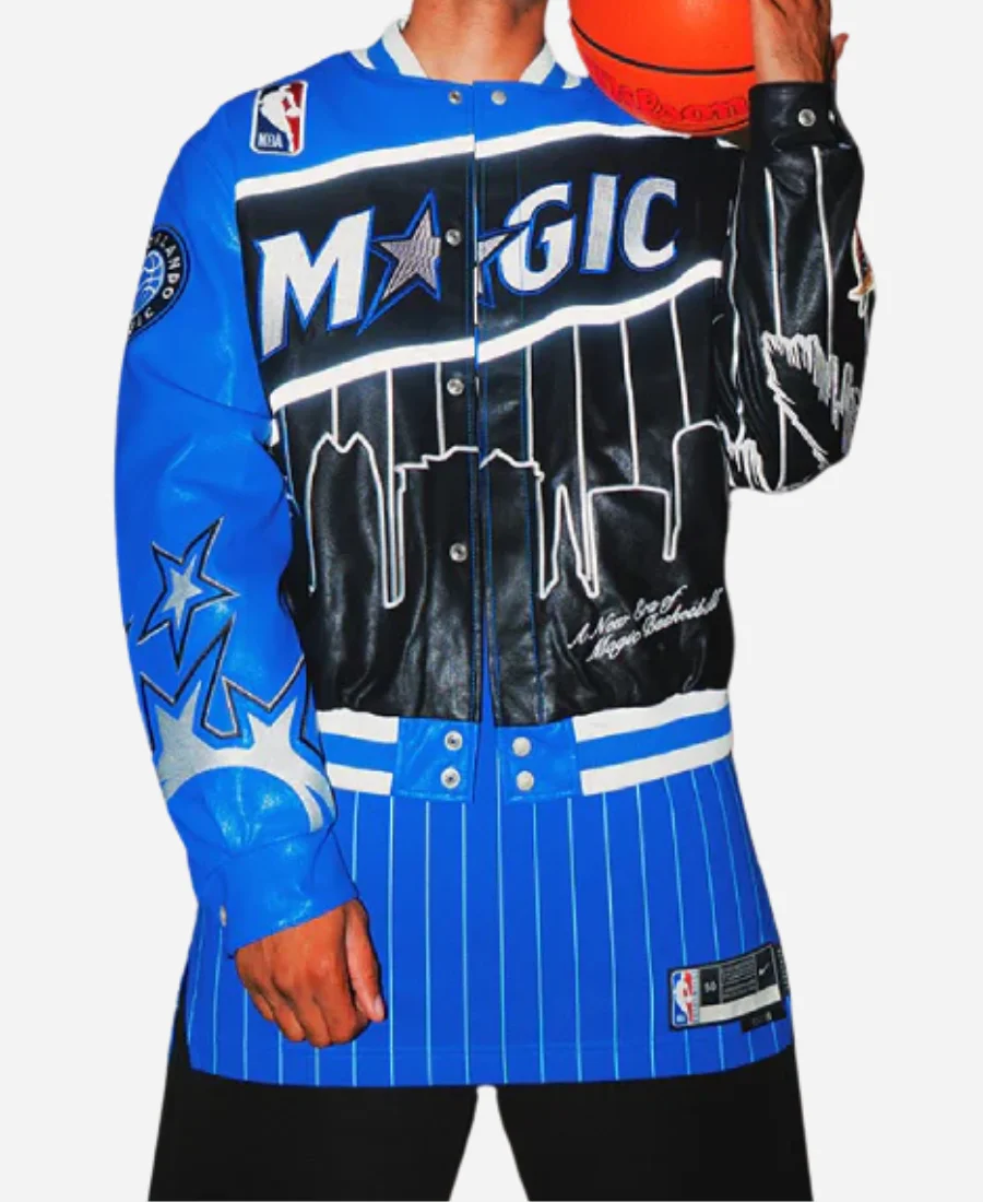 The Jeff Hamilton NBA Orlando Magic Jacket is a blend of premium sports heritage with luxury street style. It is inspired by Jeff Hamilton’s iconic NBA designs. This jacket is made for the fans who want their team pride to feel elevated.