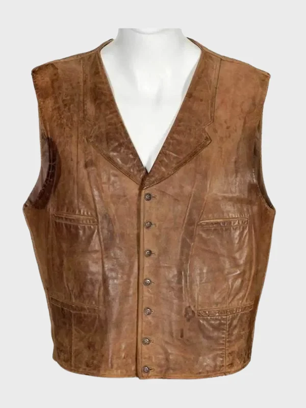 The John Wayne The Cowboys Vest is inspired by the strong Western legacy of John Wayne. This brown leather vest can give you a classic look.