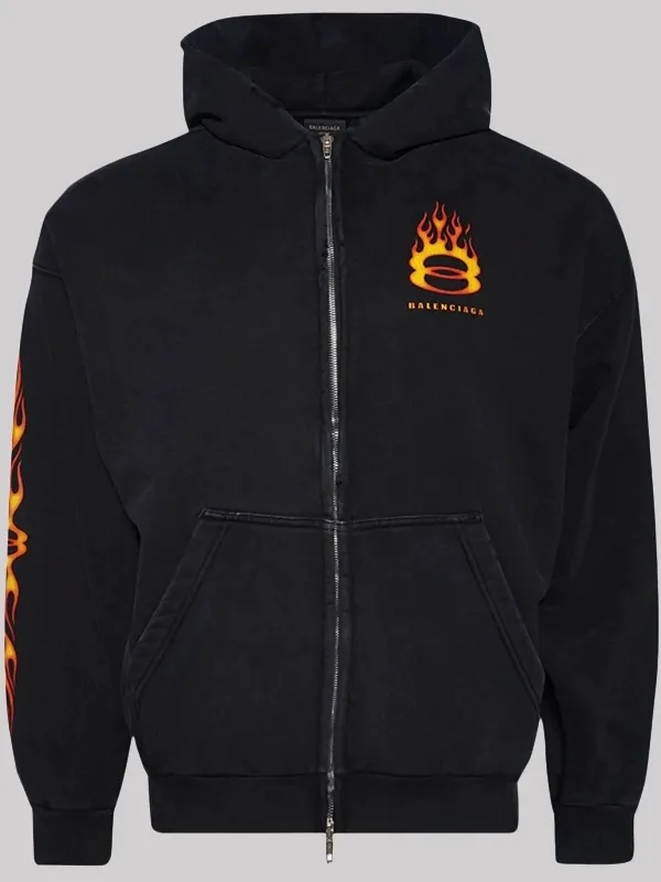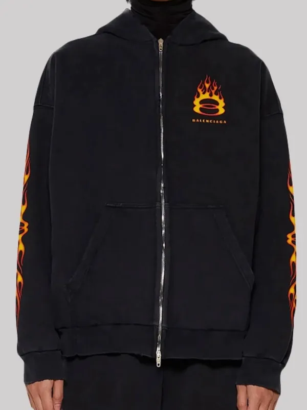 Justin Bieber Balenciaga Burning Unity Zip-Up Hoodie
