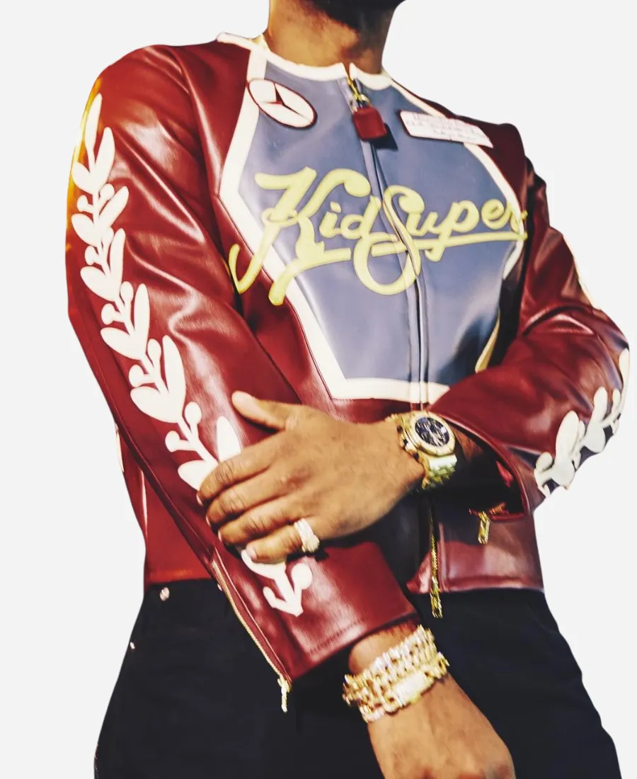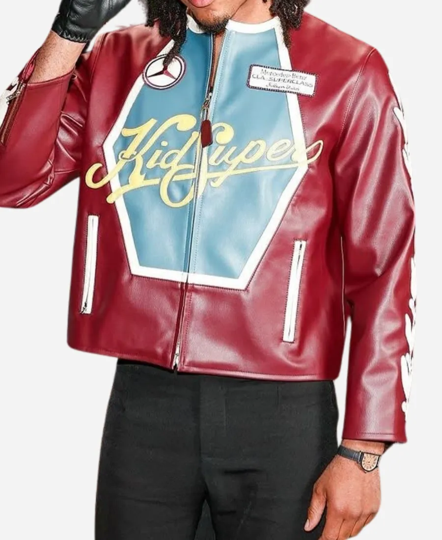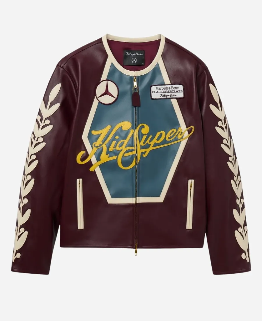 Men’s KidSuper x Mercedes-Benz 2025 Event Racer Burgundy Leather Jacket