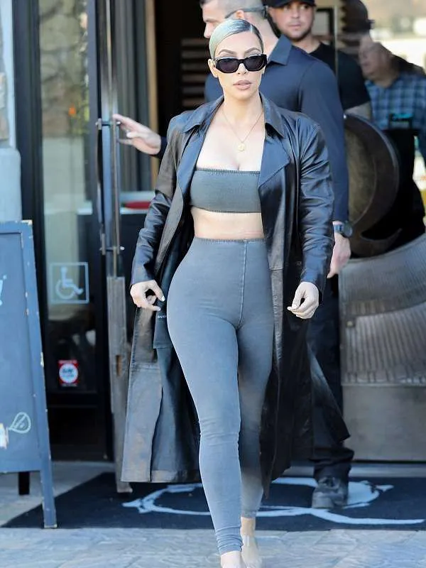Kim Kardashian Blue Leather Coat
