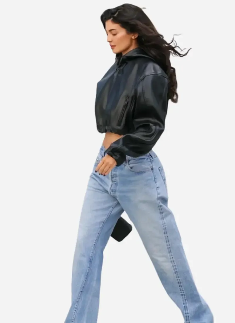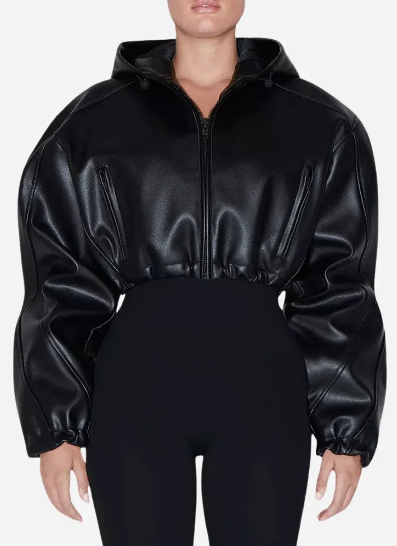 Kylie Jenner Cropped Hooded Leather Jacket