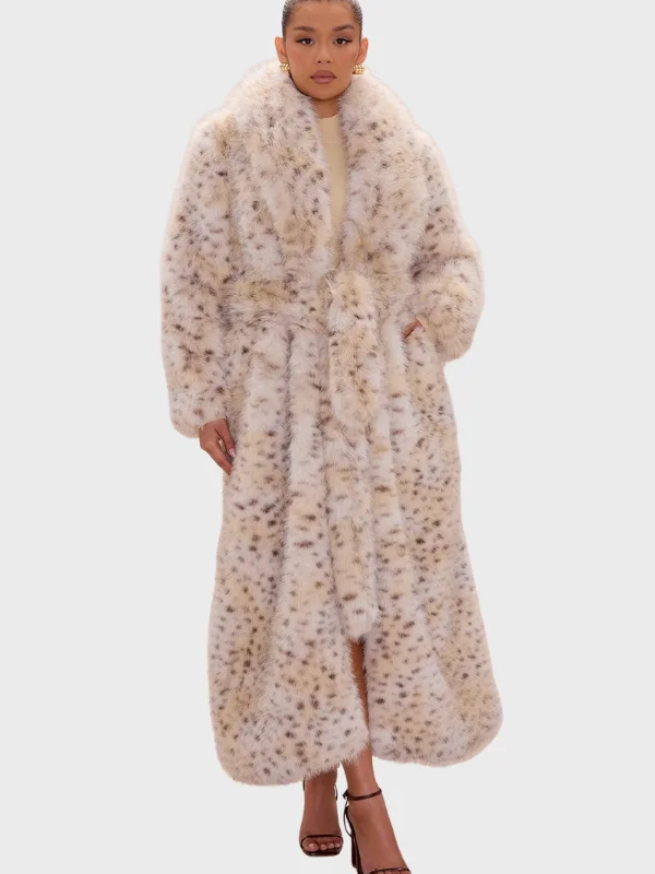 Buy Now the Lottie Belted Faux Fur Coat – Cream/combo | For Sale
