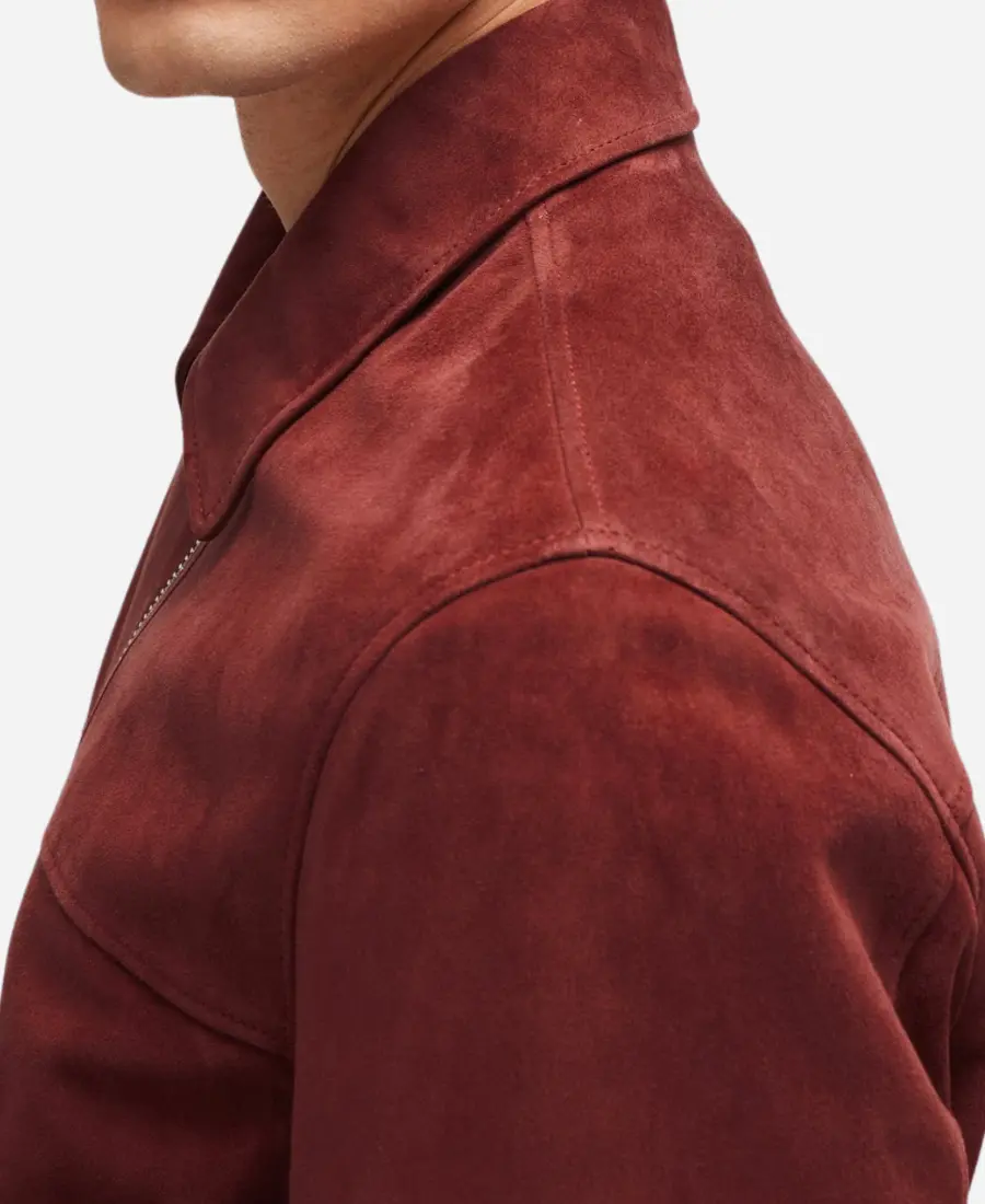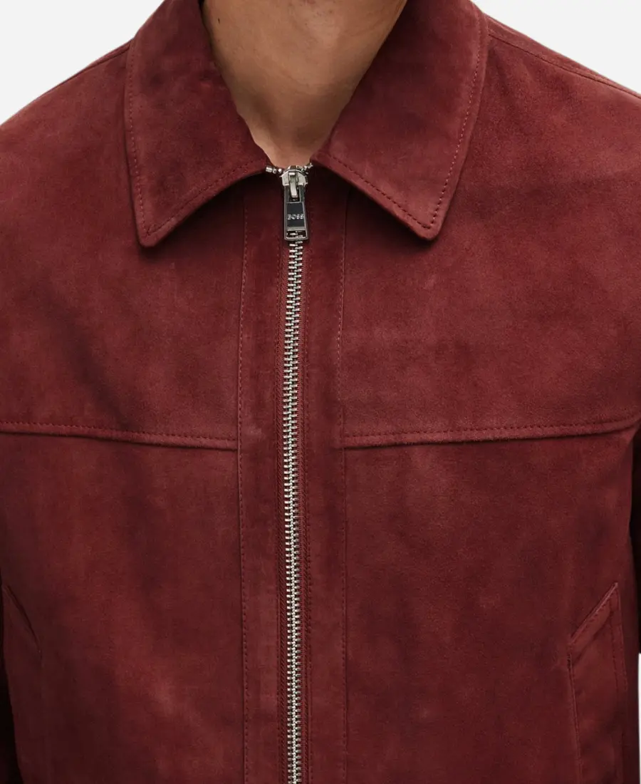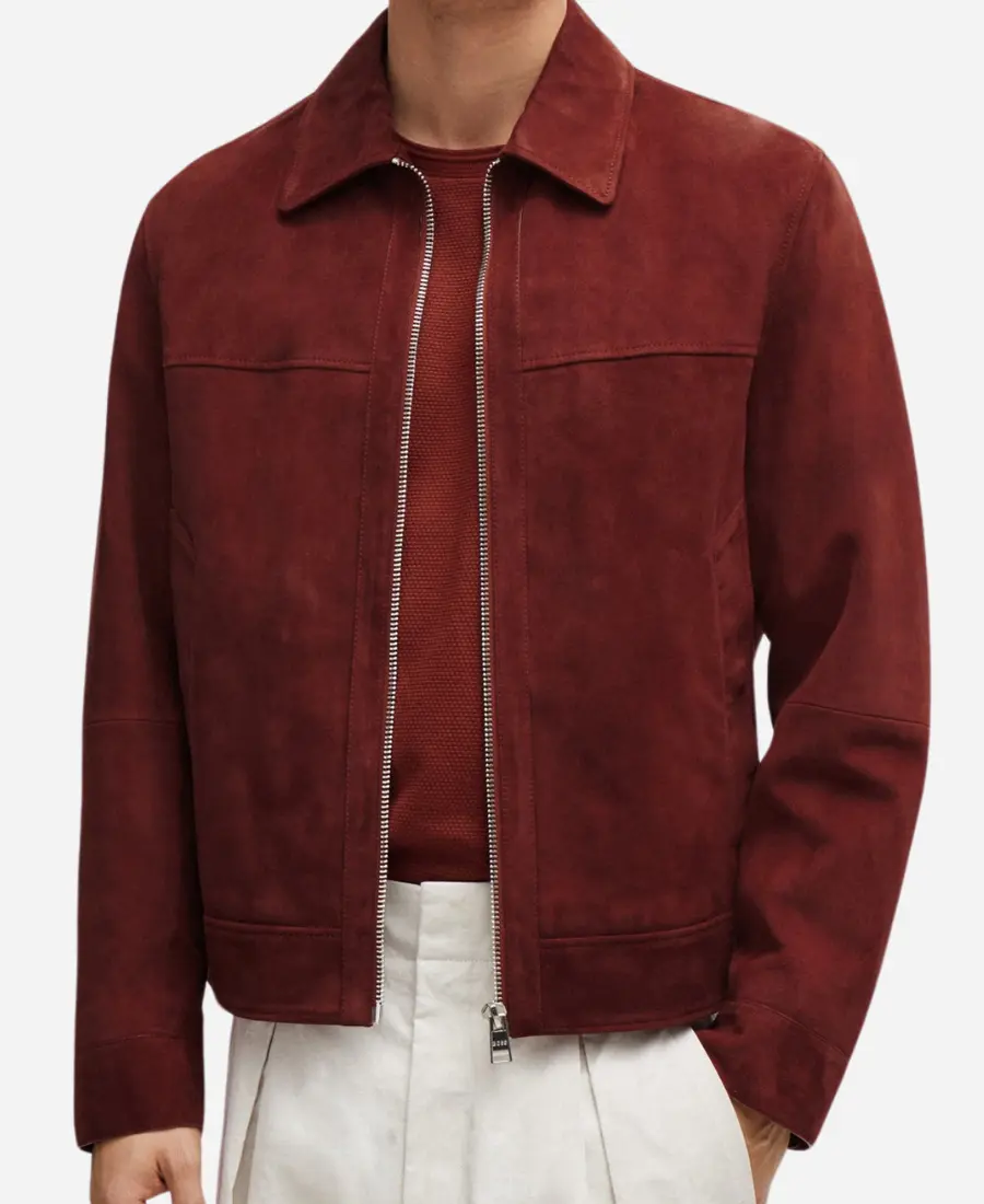 Shop Now the Eugenio Franceschini Emily in Paris Season 4 Marcello Red Suede Leather Jacket | For Sale