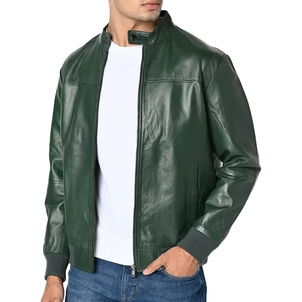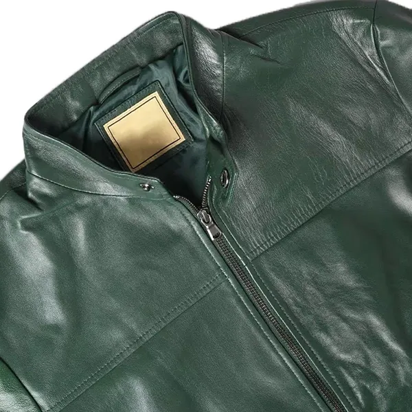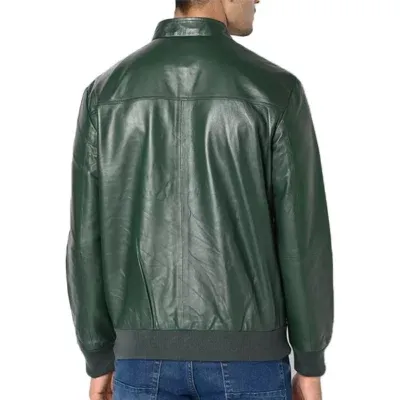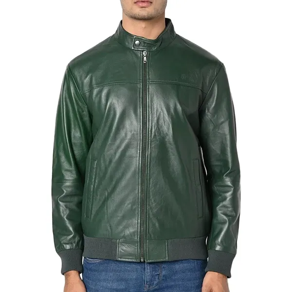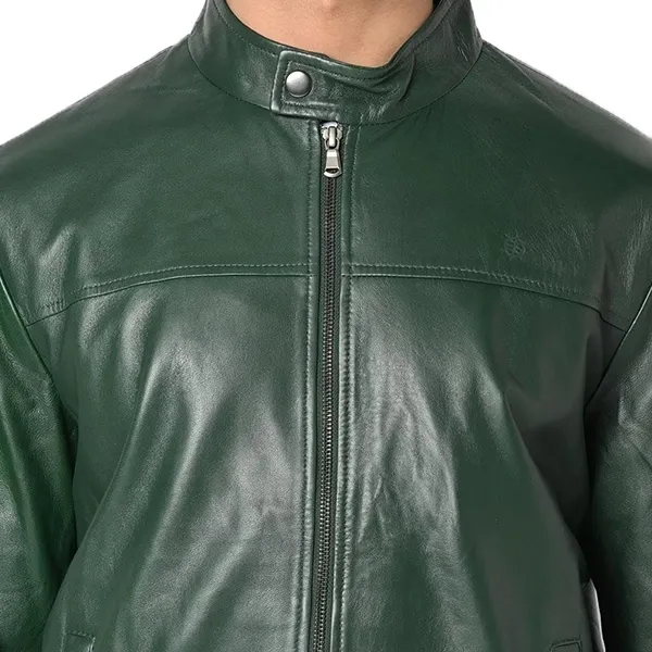 Men’s 100% Real Casual Wear Green Moto Jacket