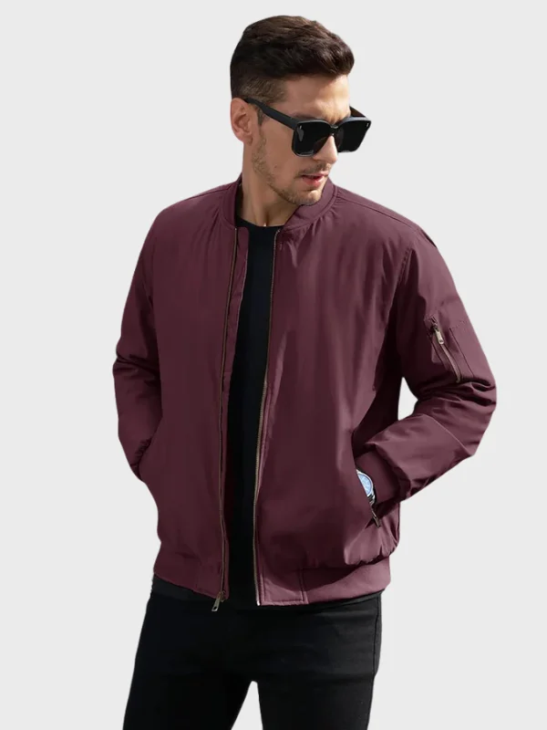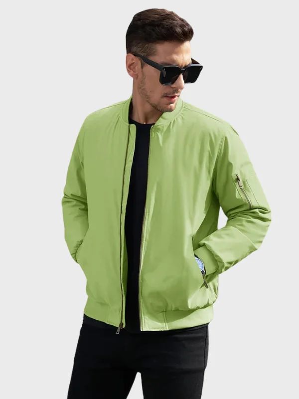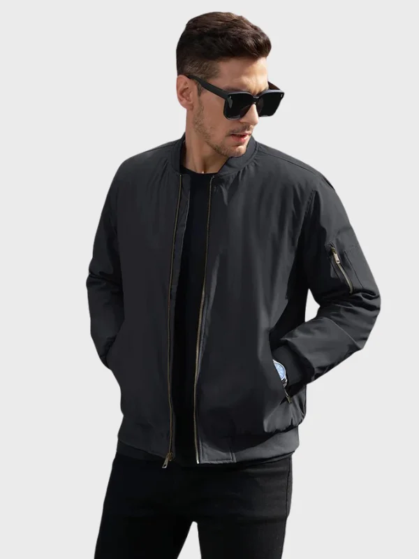 Left Zipper: Zipper head on the left side, paired with a stand-up collar and full front zip
