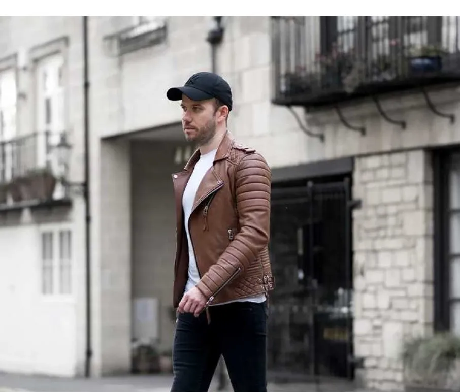 Men’s Slim Brown Biker Leather Jacket