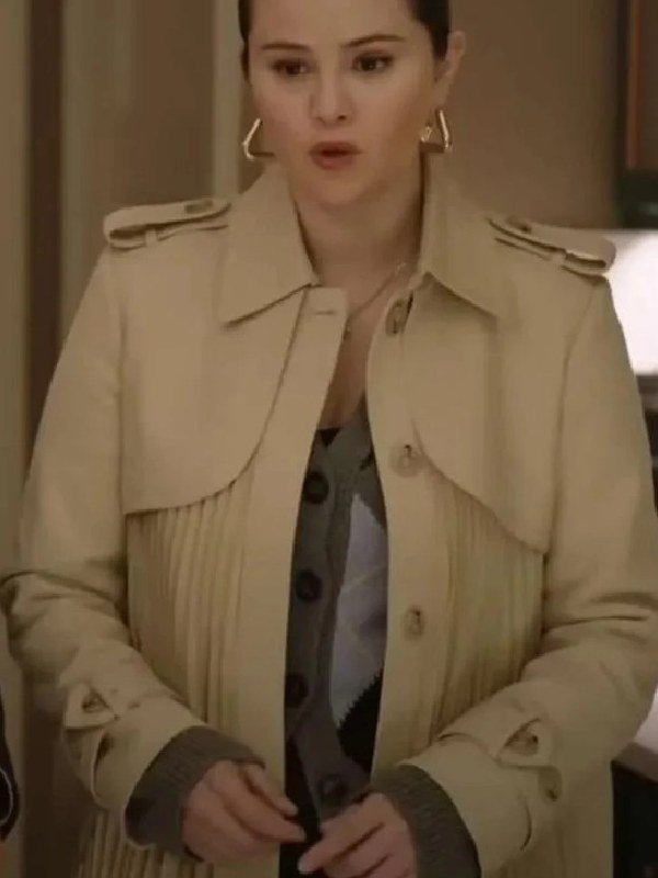 Selena Gomez Only Murders in the Building S04 Mabel Mora Beige Pleated Trench Coat