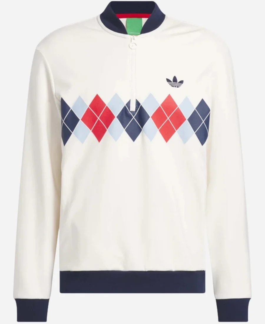 Shop Now the Adidas Originals Argyle Printed Half Zip White Sweatshirt | For Sale