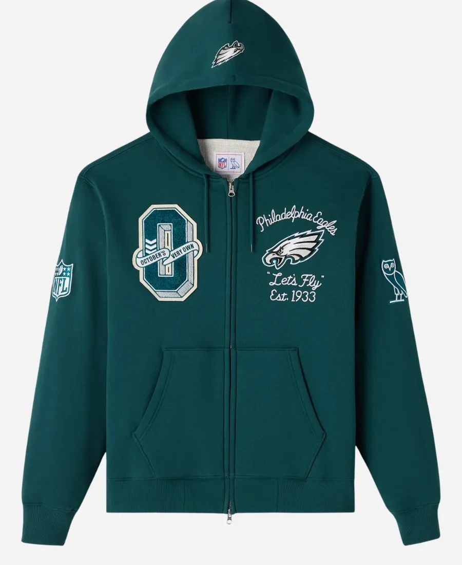 2025 October’s Very Own OVO x NFL Philadelphia Eagles Waffle Lined Green Hoodie