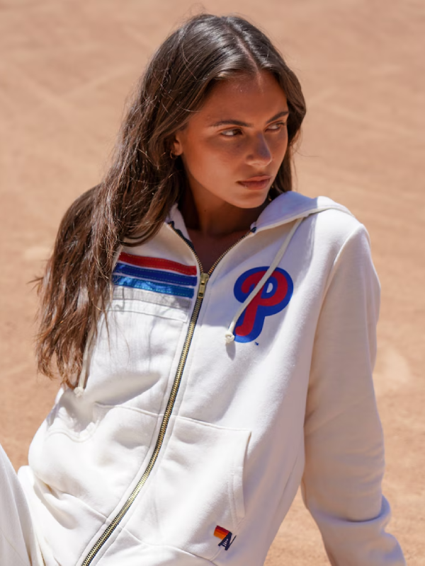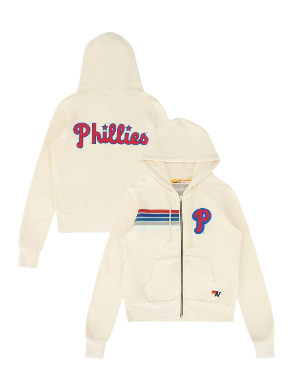 Philadelphia Phillies Aviator Nation x MLB Cream Five Stripe Hoodie