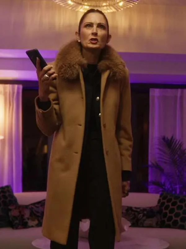 Rachel Petsiavas Christmas in Mistletoe Miranda Brown Fur Collar Trench Coat