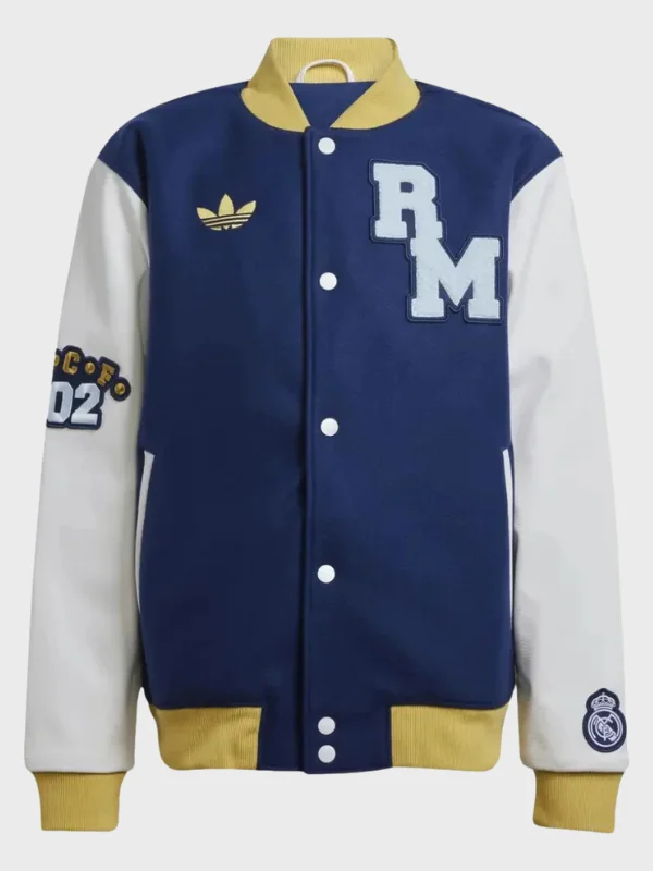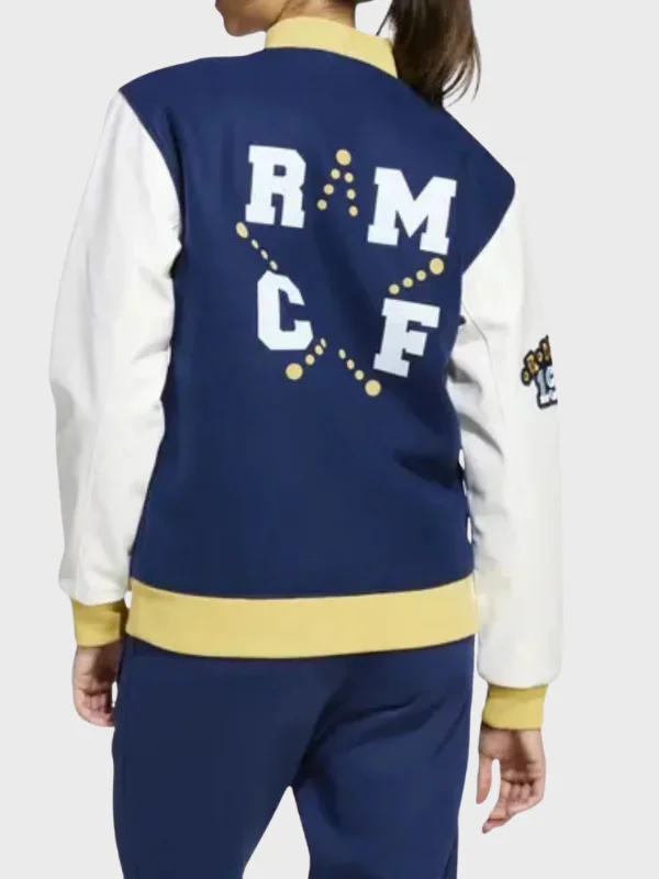 The rib-knit collar and cuffs help maintain a clean and athletic shape. The blue color keeps it classic and versatile, which makes it easy to wear with other outfits. The Real Madrid Blue Varsity Jacket from Real American Jackets is made to make you feel comfortable and confident.