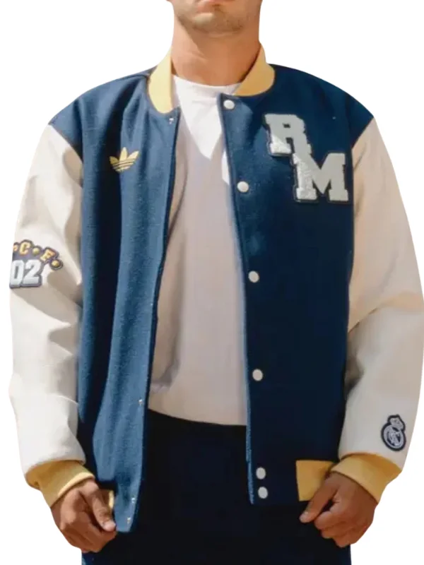 Shop Now the Real Madrid Unisex Adidas CF 2025 Blue Varsity Jacket | Real American Jackets