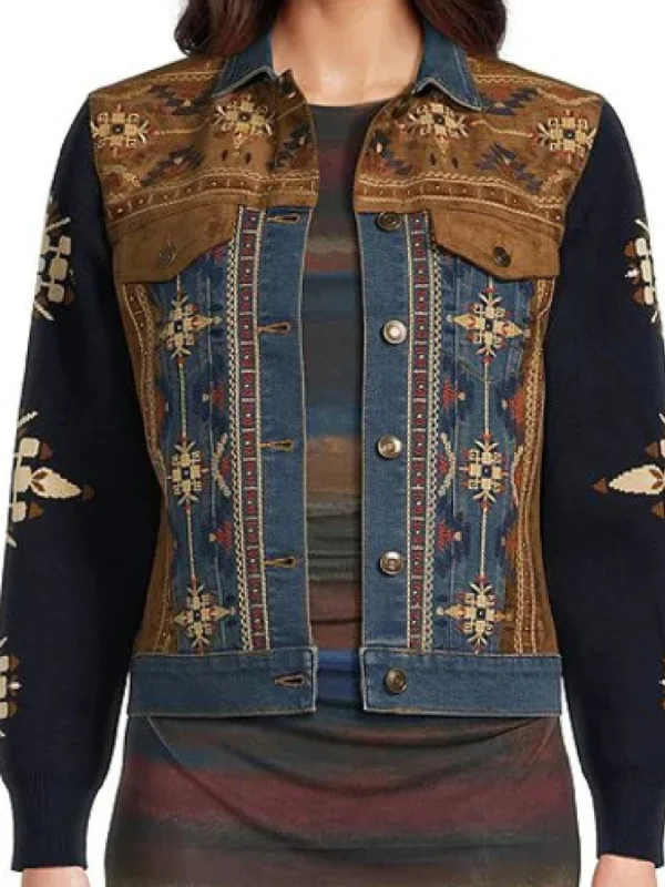 The Voice 2024 Reba Faux Suede Chest Embroidered Denim Jacket