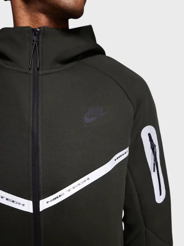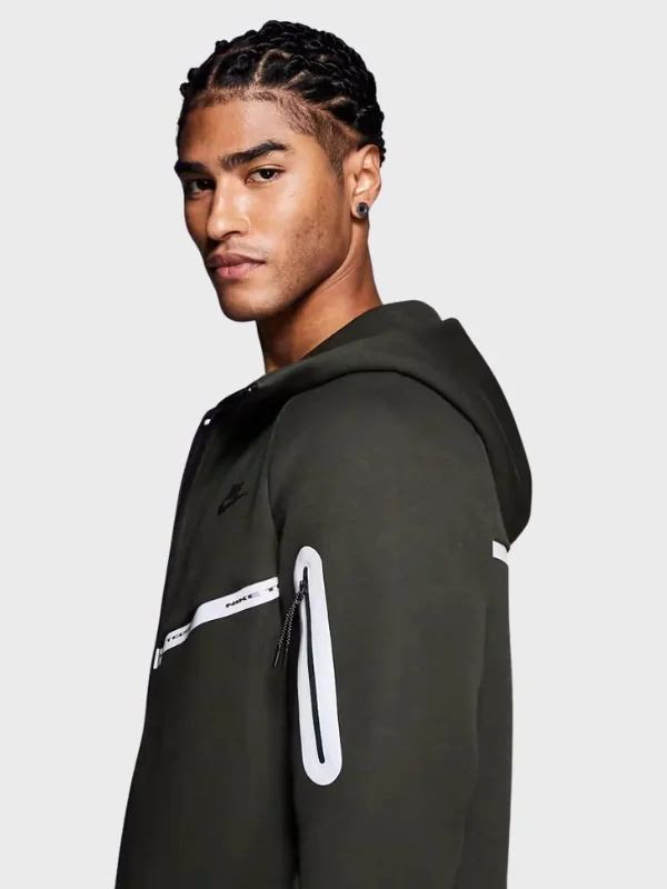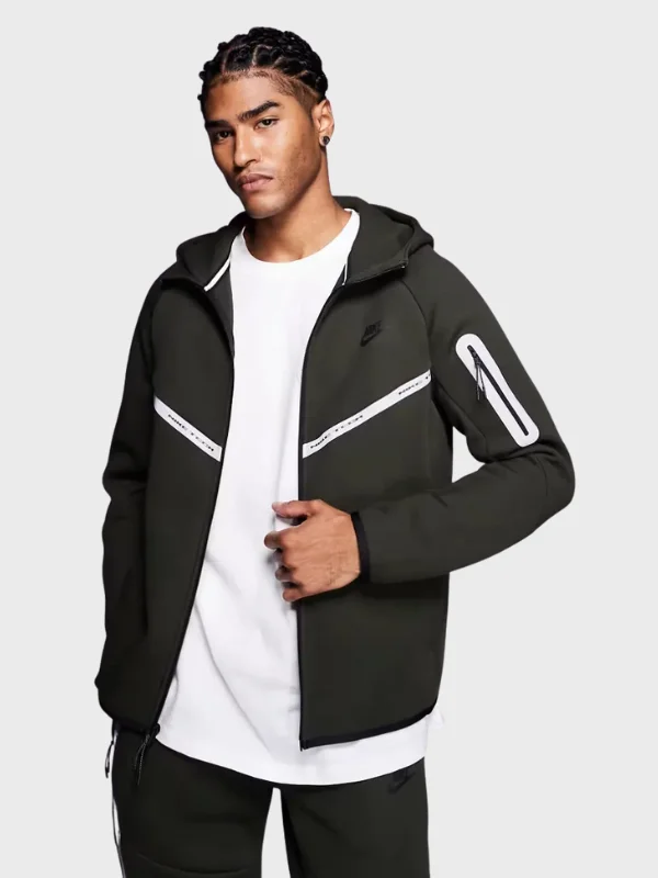 reflective full zip in dark Nike Tech Fleece green hoodie