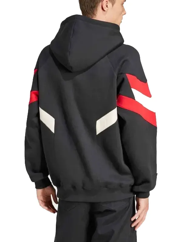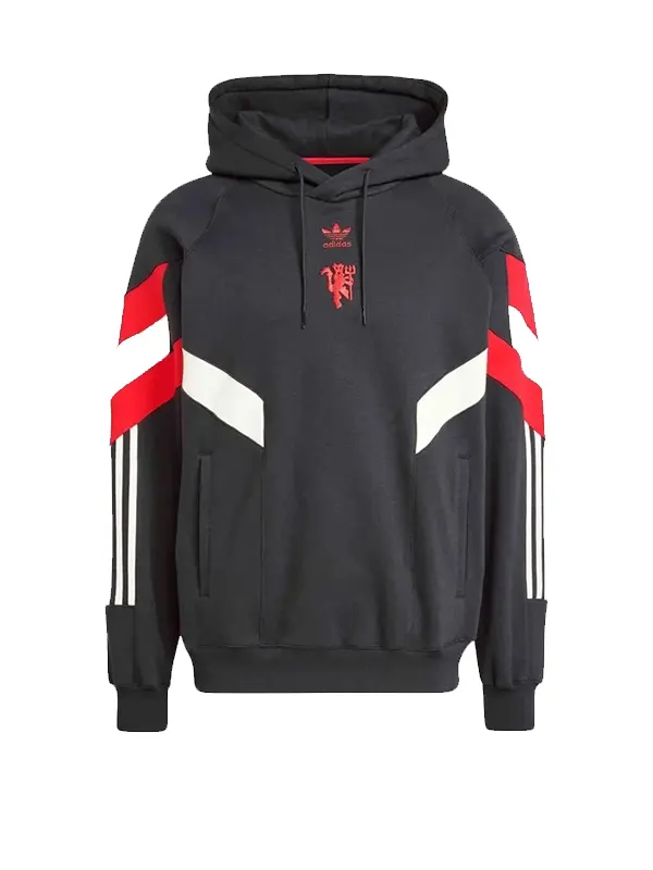 Its pullover design keeps the shape sharp and clean, while the hood adds a classic streetwear vibe. The rib-knit cuffs help the hoodie maintain a structured fit, giving it a polished look. Available in classic black color, this Manchester United hoodie is easy to style with jeans, trainers, and other outfits.