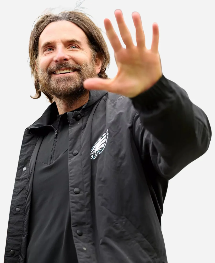 The Super Bowl Eagles Bradley Cooper 2025 Jacket is made for the fans who want a statement piece. It is inspired by Bradley Cooper’s iconic look; this jacket gives you a polished sports-inspired look. The cotton fabric keeps it breathable and comfortable, which makes it ideal for long wear.