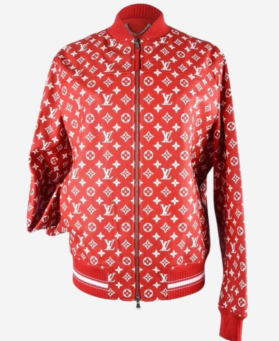 Supreme x Louis Vuitton Baseball Red Leather Bomber Varsity Jacket